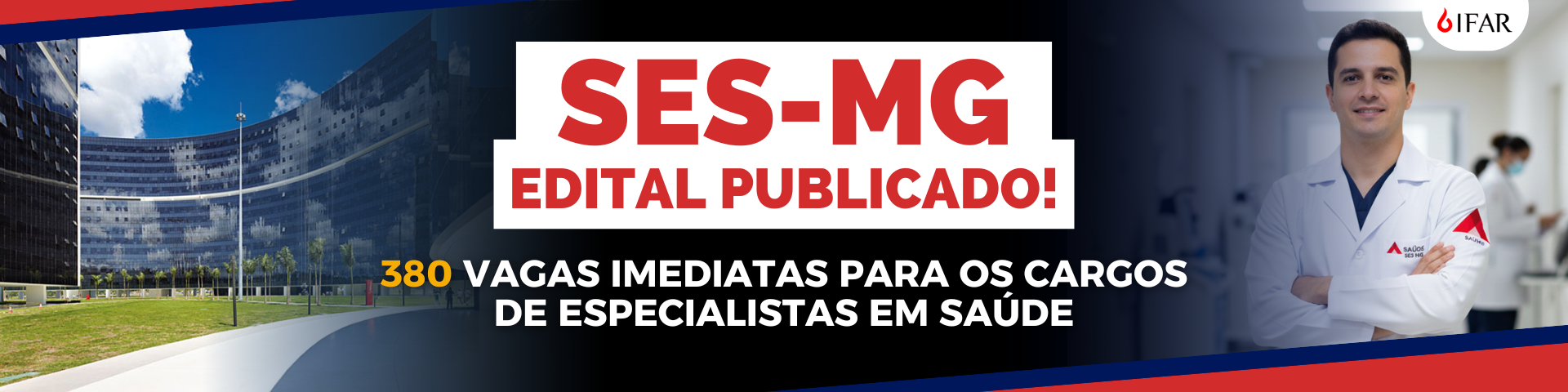 O concurso público da Secretaria de Estado de Saúde de Minas Gerais (SES-MG) para a carreira de Especialista em Políticas e Gestão da Saúde (EPGS), que abrange diversas formações da área da saúde, teve edital oficialmente publicado em 16 de janeiro de 2026, com 380 vagas imediatas + formação de cadastro de reserva para candidatos de nível superior. A seleção é organizada pela banca IBGP (Instituto Brasileiro de Gestão e Pesquisa), que conduzirá todas as etapas, incluindo provas objetiva e discursiva.